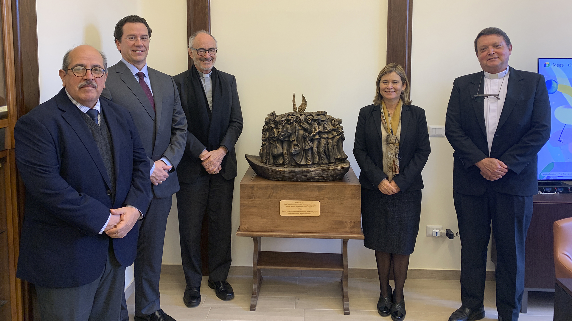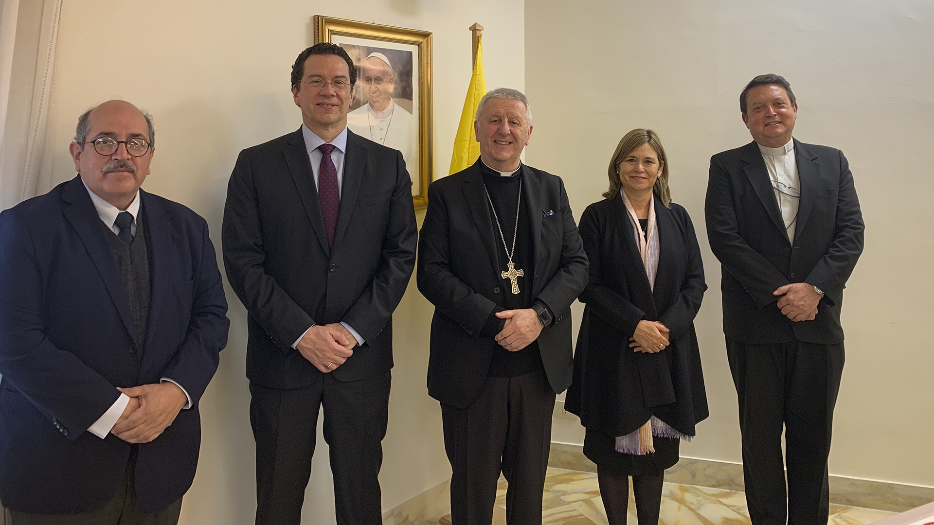 Durante la visita, los representantes de nuestra Universidad sostuvieron reuniones con altas autoridades de la Santa Sede, como el cardenal Gianfranco Ravasi, presidente del Pontificio Consejo de la Cultura y de la Pontificia Comisión de Arqueología Sacra; el cardenal Peter Turkson, prefecto del Dicasterio para el Servicio del Desarrollo Humano Integral; el cardenal Michael Czerny, subsecretario de la Sección de Migrantes y Refugiados del Dicasterio para el Servicio del Desarrollo Humano Integral; el cardenal Pietro Parolin, secretario de Estado del Vaticano; el Superior General de la Compañía de Jesús, el padre Arturo Sosa; el cardenal Giuseppe Versaldi, prefecto de la Congregación para la Educación Católica y nuestro Gran Canciller; el padre Roberth Hernández, secretario de Versaldi; y, finalmente, con el Sumo Pontífice, el Papa Francisco I.