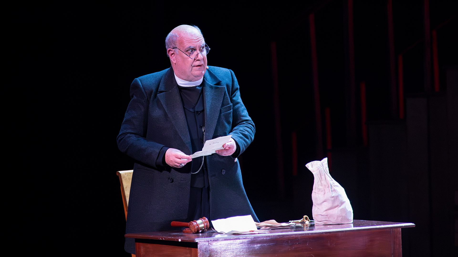 A través del humor, el suspendo y la música, esta adaptación teatral invita a cuestionarnos sobre la fragilidad ética y los cimientos de la sociedad. Todo esto en una esmerada puesta en escena, producida por la Pontificia Universidad Católica del Perú, con la dirección Mateo Chiarella Viale, la dirección adjunta de Lucho Tuesta, y con la actuación de destacados actores y actrices nacionales como Alfonso Santistevan, Haydée Cáceres, Alberto Isola, Luis Peirano, Víctor Prada, Celeste Viale, entre los más de 20 artistas y músicos que conforman el elenco.