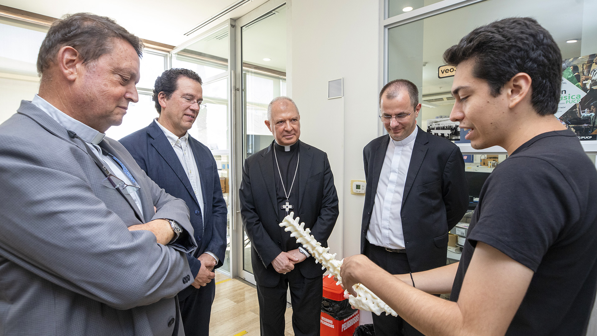El equipo rectoral, liderado por el Dr. Carlos Garatea, y los jefes de las direcciones académicas de la PUCP acompañaron a Mons. Gualtieri en su recorrido por la Universidad.