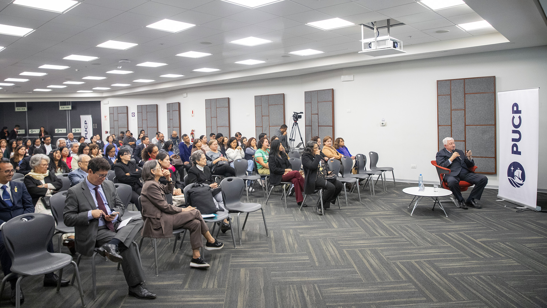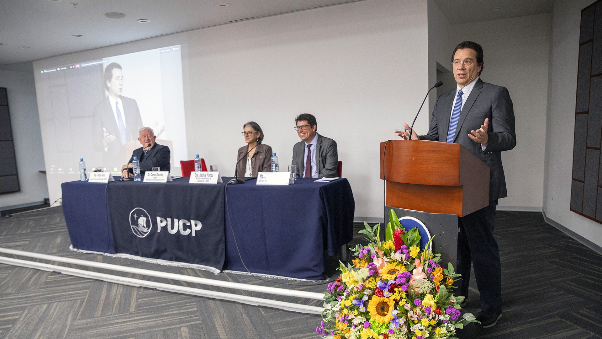 Bajo la presentación de Sebastián Pimentel, jefe del Repositorio Institucional, el evento por la celebración por los 10 años de esta herramienta contó con las palabras de bienvenida del rector de la PUCP, Dr. Carlos Garatea Grau.