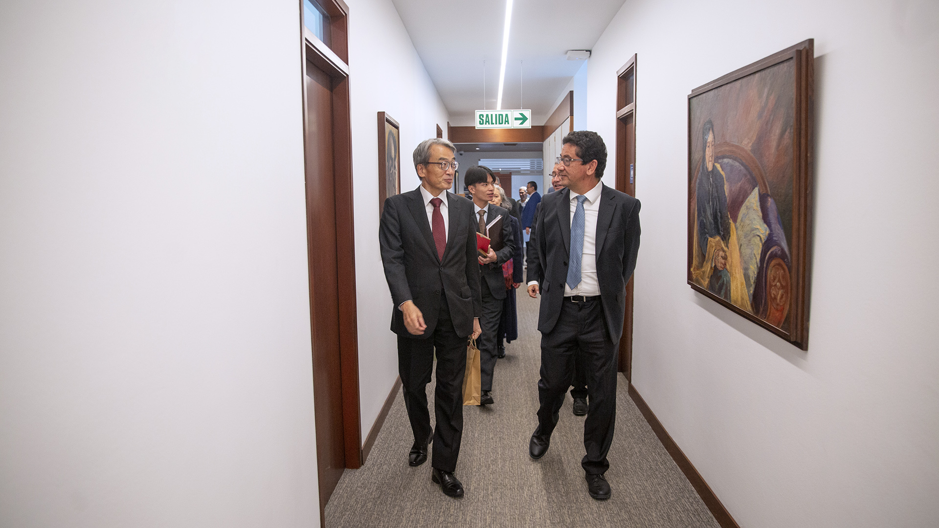 El embajador japonés Tsuyoshi Yamamoto se reunió con nuestro rector, Dr. Julio Del Valle; el vicerrector de Investigación, Dr. Eduardo Ismodes; la Dra. María Antonieta Delgado, directora académica de Relaciones Institucionales; y otras autoridades de nuestra Universidad para promover convenios académicos y aspectos de intercambio cultural y científico.