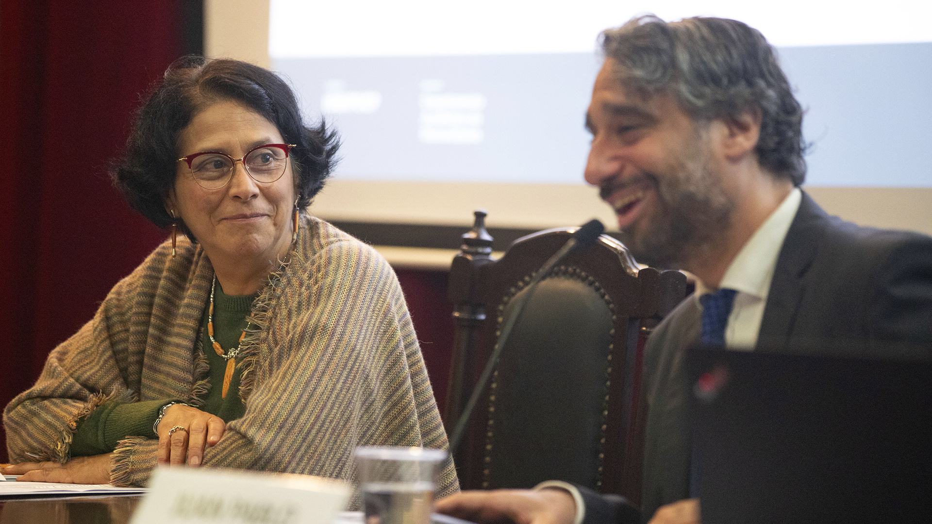 El Dr. Juan Pablo Artinian, historiador y docente de la Universidad de Buenos Aires, dio la conferencia magistral de inauguración.El Dr. Juan Pablo Artinian, la Mag. Irma del Águila, el Dr. Julio del Valle, el Dr. Miguel Giusti y el Dr. Salomón Lerner.La Dra. Irma del Águila, docente del Departamento de Ciencias Sociales PUCP, y el Dr. Juan Pablo Artinian, historiador y docente de la Universidad de Buenos Aires.El evento se realiza en nuestro Auditorio de Humanidades.La inauguración incluyó una intervención artística a cargo del elenco de la Universidad Nacional de Arte Escénico.
