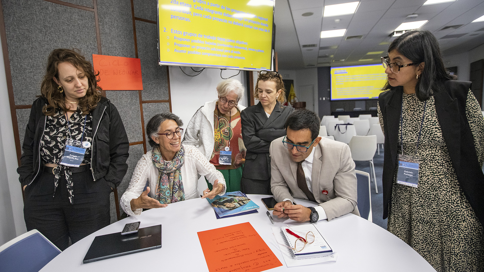 Los integrantes del nodo regional escucharon con atención, preguntaron y luego plasmaron sus impresiones en post-its y papelógrafos. “Después de que nos contaban los proyectos había un silencio porque todos nos quedábamos pensando en cómo llevar estas ideas a nuestras universidades”, dijo Verónica Yépez, docente de la Pontificia Universidad Católica del Ecuador (PUCE).