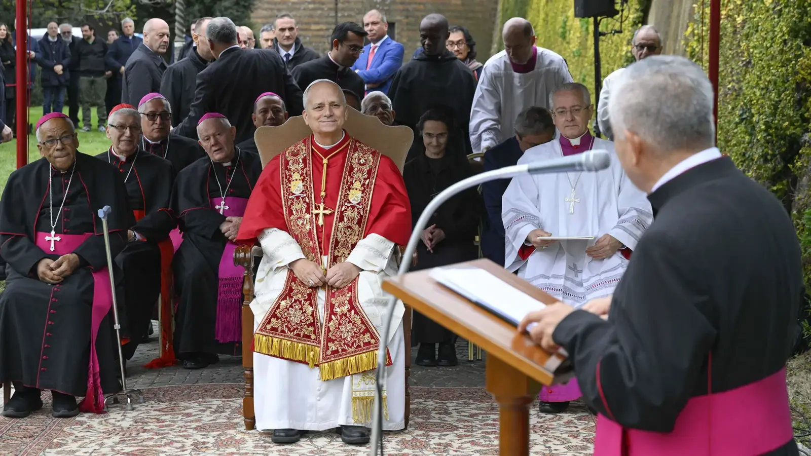 Después de la conferencia, el sábado 31, el santo padre León XIV realizó la bendición de dos obras de arte sacro peruano en los Jardines Vaticanos: una estatua en piedra de Santa Rosa de Lima y un mosaico de las advocaciones marianas.