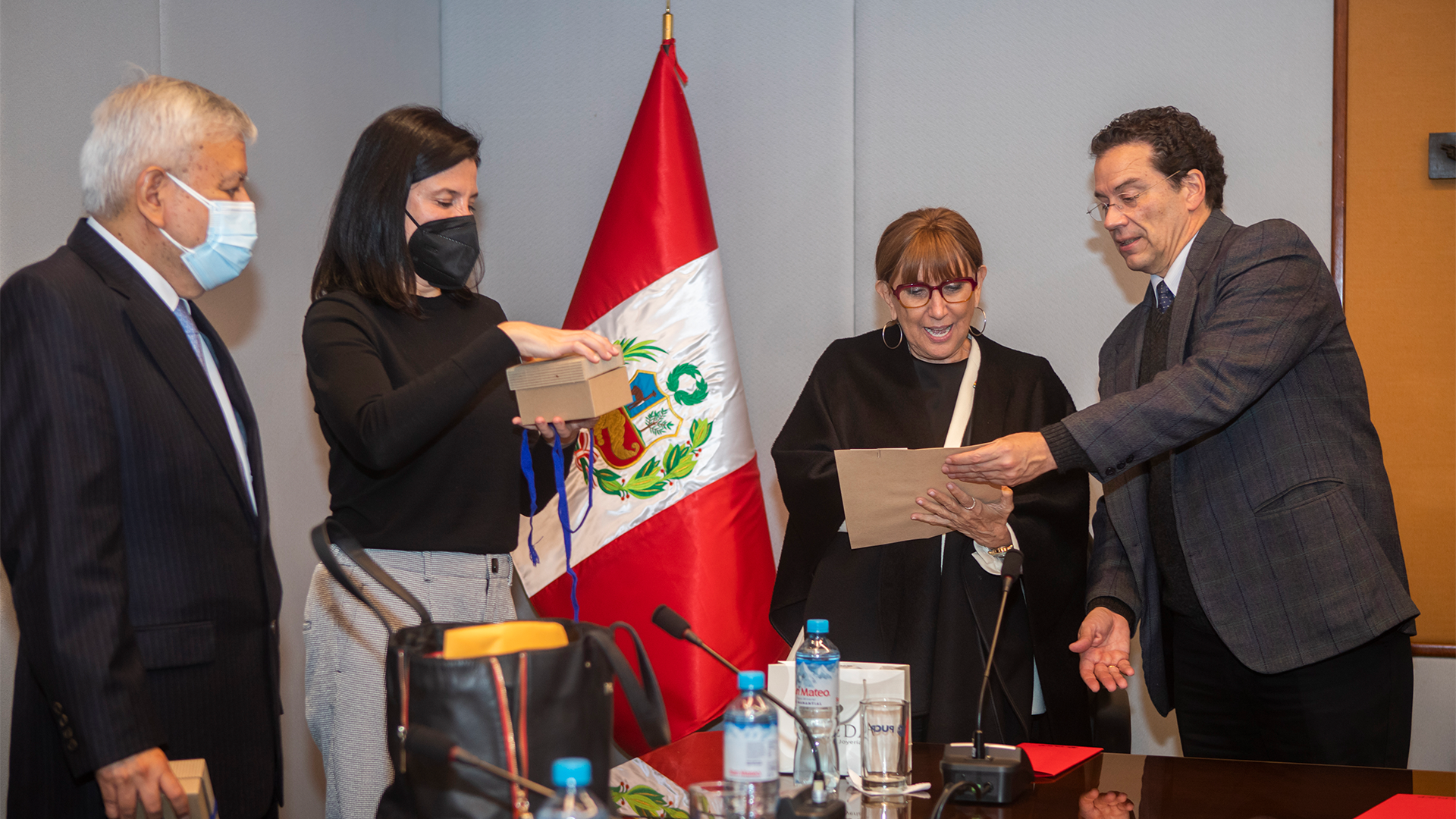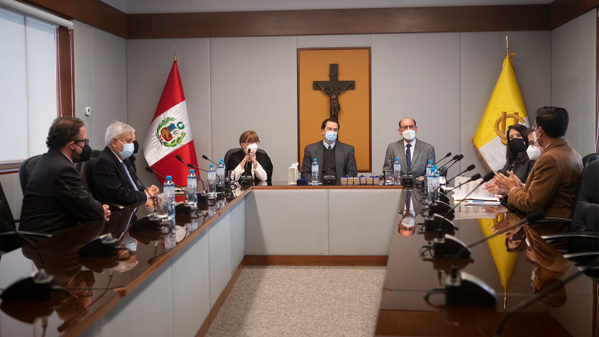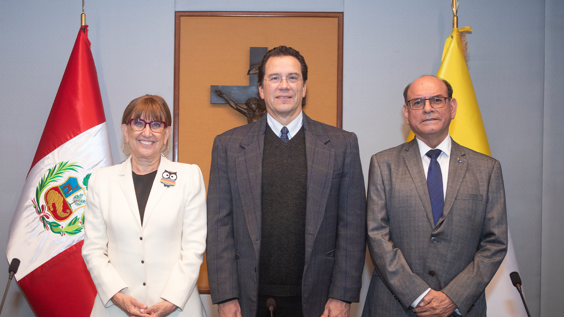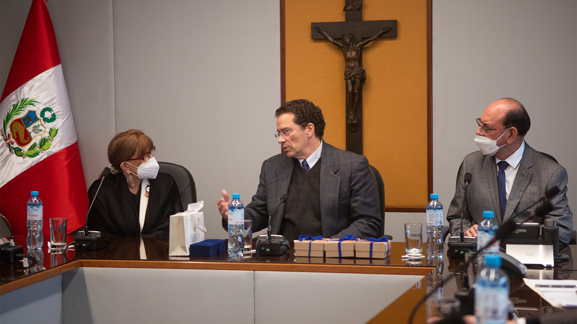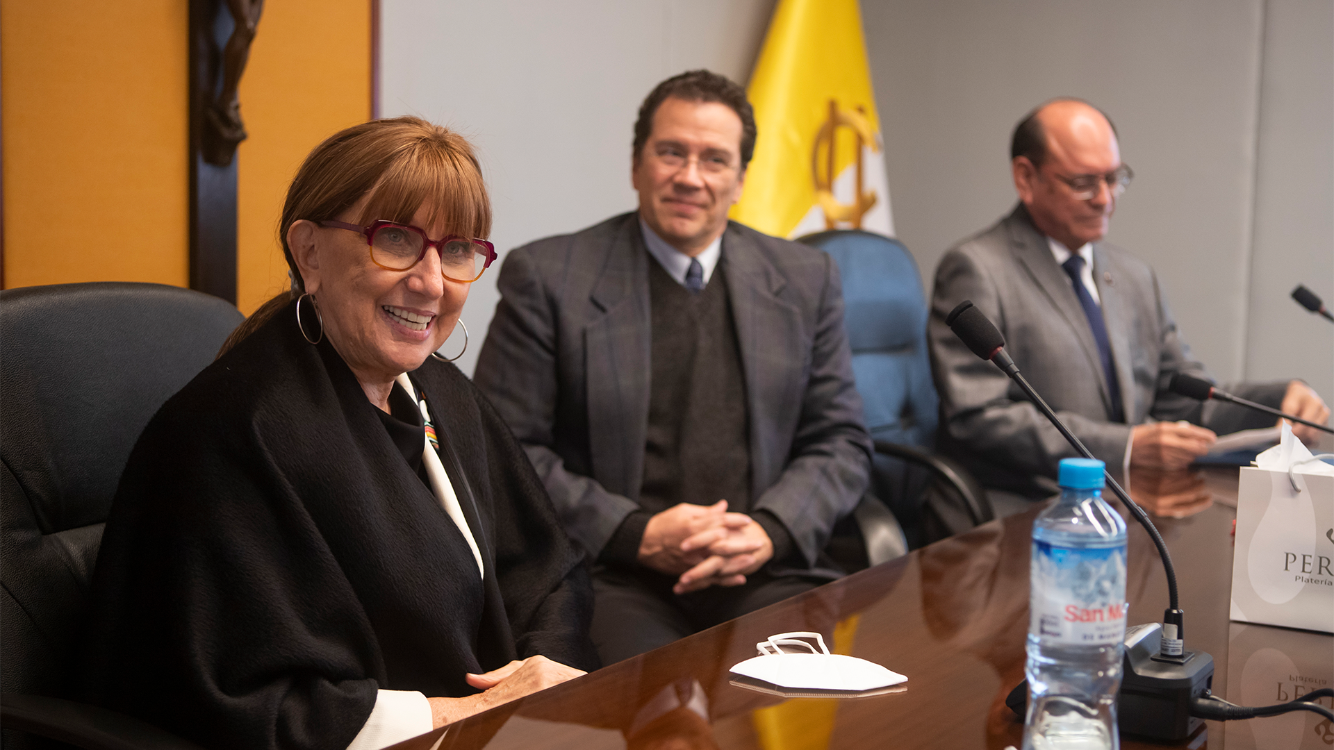 El pasado lunes 11 de julio, la secretaria general de la Conferencia de las Naciones Unidas sobre Comercio y Desarrollo (UNCTAD), Rebeca Grynspan, visitó el campus PUCP acompañada del ministro de Relaciones Exteriores, César Landa, y del representante permanente del Perú ante los Organismos Internacionales con sede en Ginebra, embajador Luis Chuquihuara. Ellos sostuvieron una reunión bilateral con nuestro rector, Dr. Carlos Garatea Grau, donde trataron sobre oportunidades de capacitación a jóvenes en el área de desarrollo y comercio internacional.