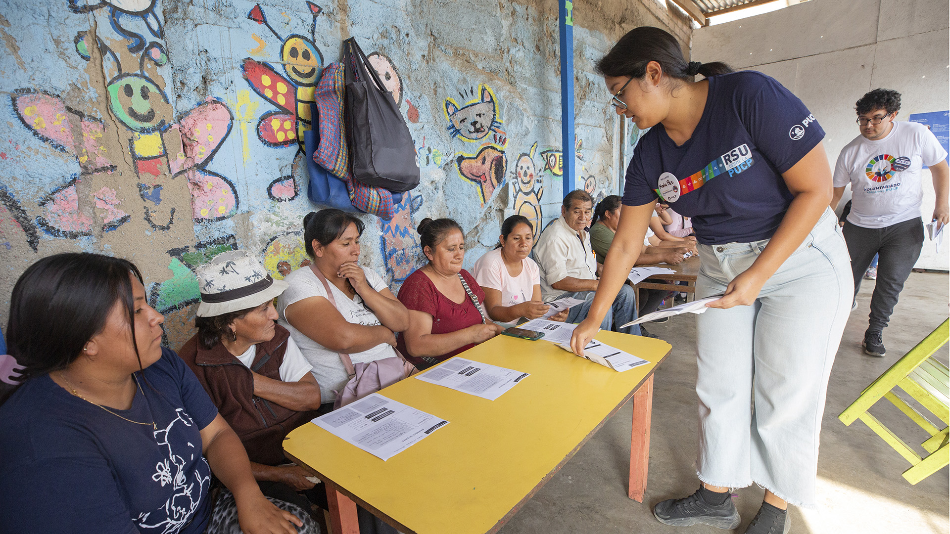 En el lugar resalta un pequeño local comunal dividido en dos habitaciones: una cocina y una sala, cuya pared decorada con tiernos personajes de caricatura rememoran a un jardín de infancia. En este cuarto, las dirigentas de las ollas comunes y sus hijos se reúnen cálidamente, como si de una gran familia se tratara. Bromean pícaramente entre ellas sin perder la chispa de esperanza de generar un cambio en sus vidas y las de sus familias. Así, con cariño y risas, empezó “Juntas por nuestras finanzas”, cierre del taller que tuvo por objetivo impactar positivamente a personas en situación de vulnerabilidad.