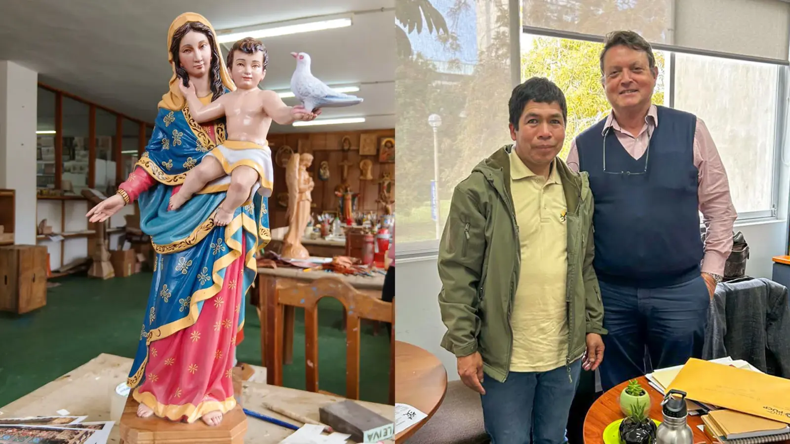 El escultor Miguel Ángel Morales, formado en los talleres Don Bosco, esculpió la estatua de 40 cm de Nuestra Señora de la Paz que el equipo rectoral de la PUCP entregó al Papa León XIV. Su obra, marcada por la oración y el oficio minucioso, ha llegado también al escritorio del Papa Francisco.