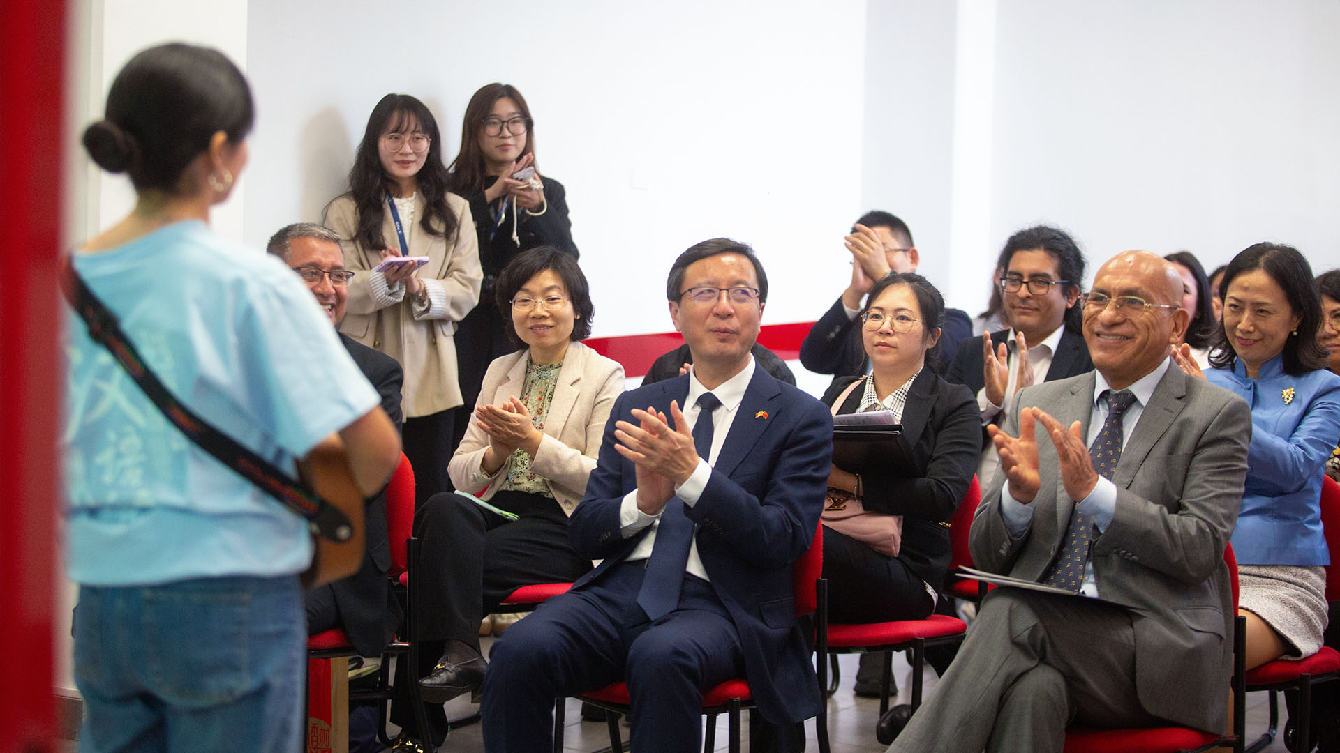 Asimismo, el vicerrector académico PUCP destacó la necesidad de establecer una cooperación en el campo de la educación digital, el incremento de la cooperación académica, el intercambio de profesores y alumnos, y la investigación con importantes universidades e instituciones de China. Finalmente, el Dr. Waldo Mendoza reafirmó el compromiso de nuestra Universidad en seguir promoviendo el aprendizaje de la lengua y la cultura china en el Perú especialmente a través de nuestro Instituto Confucio, fundado hace 15 años.