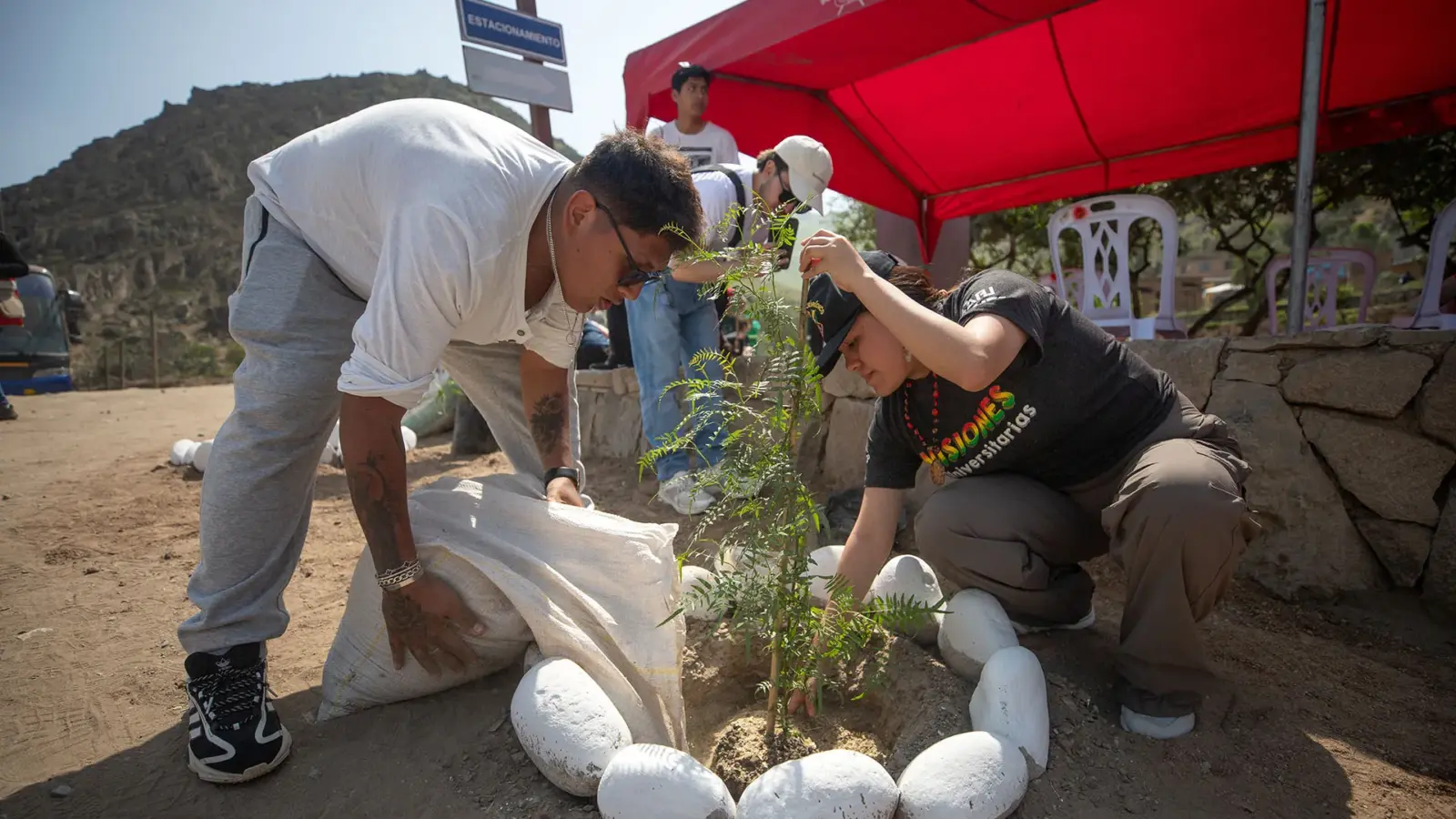 Al descender las Lomas de Lúcumo, los jóvenes plantaron un molle en el perímetro Parque Mosaico.