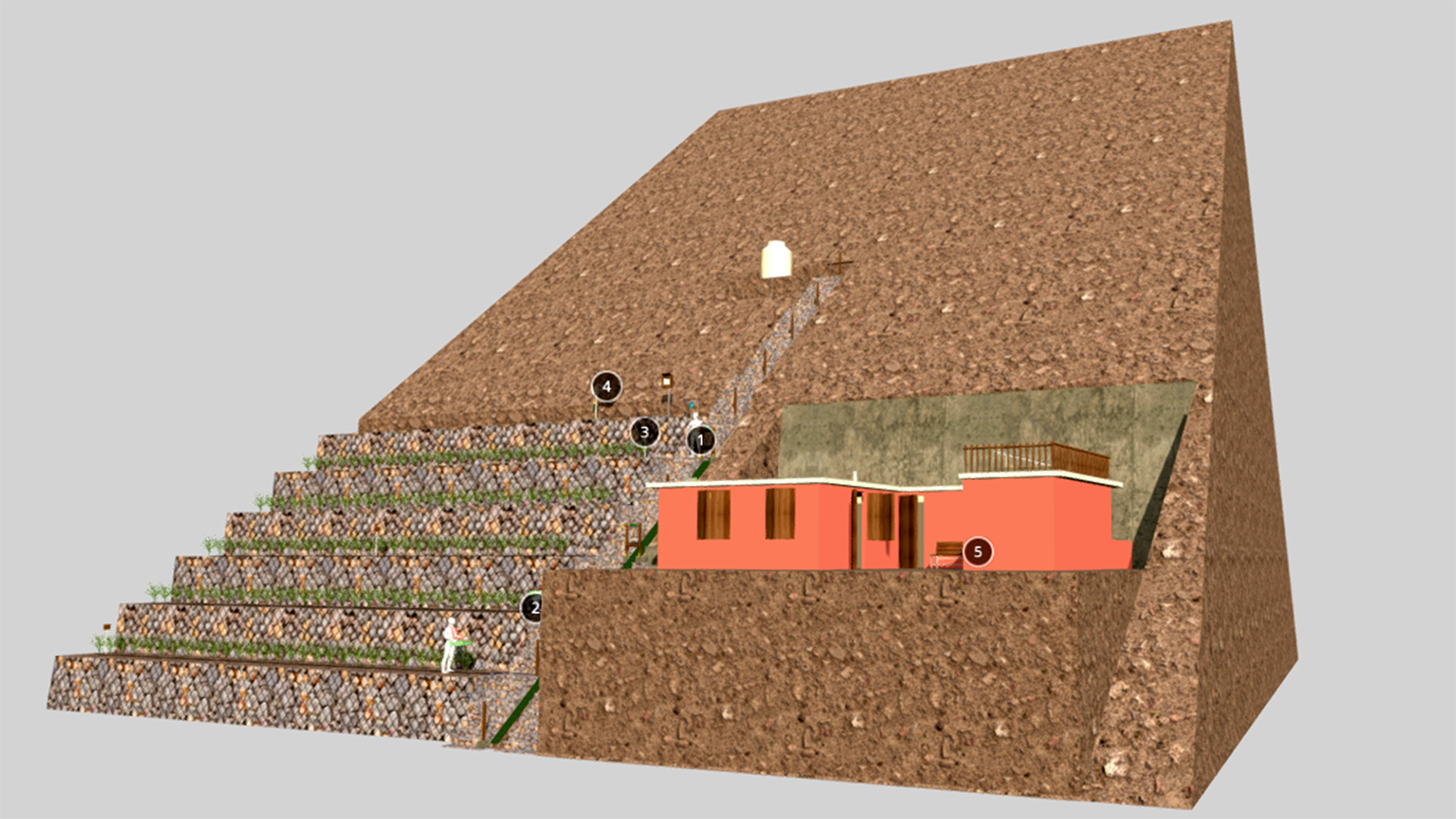 El proyecto promueve el uso de materiales y técnicas locales sostenibles.Se utiliza paneles solares para generar energía renovable, limpia y segura.