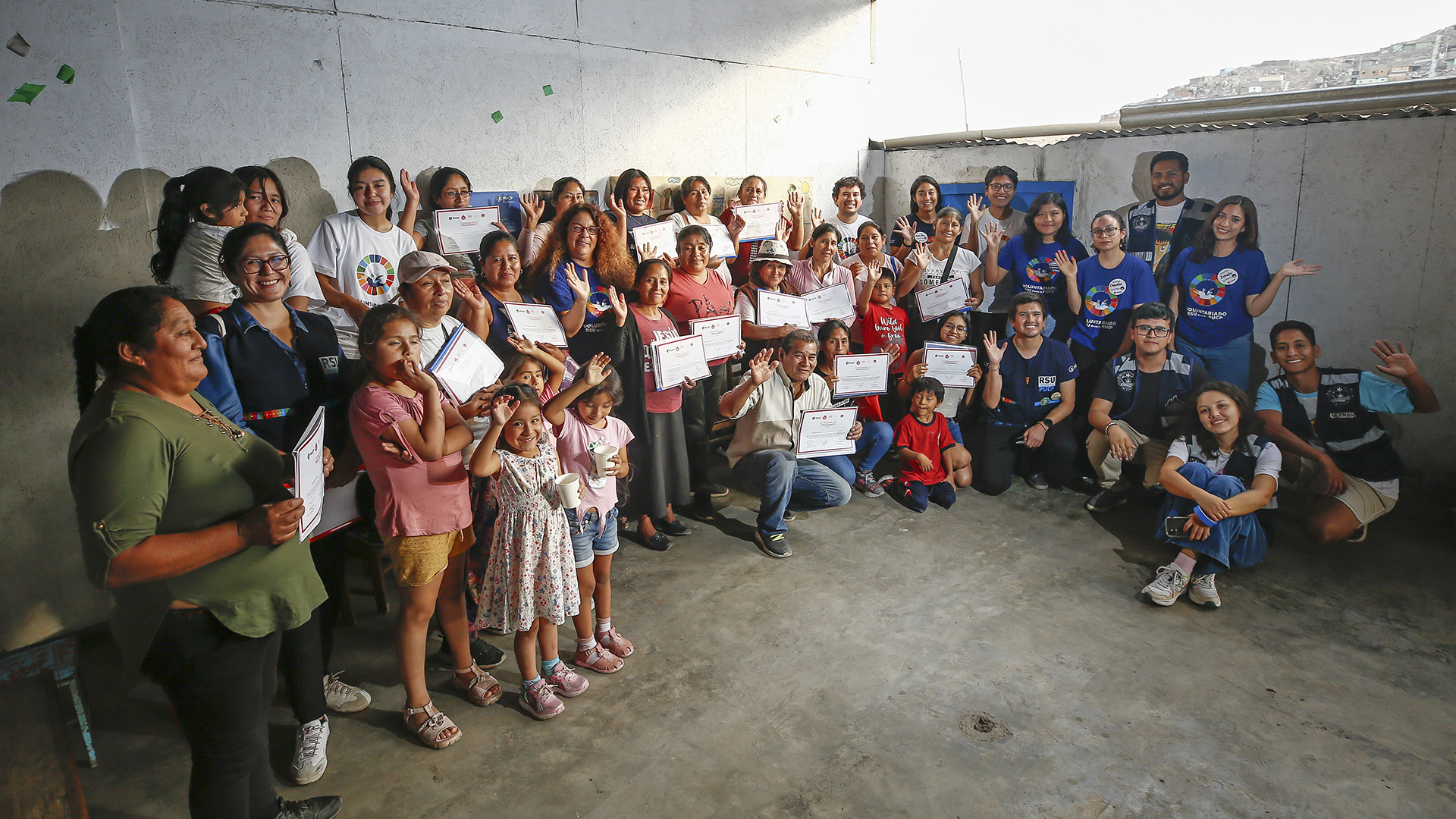 El proyecto “Juntas por nuestras finanzas”, implementado por la Dirección Académica de Responsabilidad Social (DARS) en alianza con las organizaciones sin fines de lucro “Peruanos Unidos por la Cocina y la Alimentación (PUCA)” y “La Revolución», no solo promovió la educación financiera y el empoderamiento económico de más de 20 lideresas de ollas comunes, sino que se convirtió en un espacio de colaboración activa con la Municipalidad de Lima, organizaciones sociales de base y redes vecinales. A través de talleres participativos, 13 estudiantes de Economía brindaron herramientas para la gestión de presupuestos, microemprendimientos y administración de recursos, generando autonomía financiera y bienestar comunitario en zonas de alta vulnerabilidad. El programa impulsó, además, acciones de educación alimentaria, promoviendo hábitos de nutrición saludable y aprovechamiento sostenible de insumos. Este trabajo conjunto entre la universidad, el gobierno local y las comunidades fortaleció los lazos de cooperación social y desarrollo inclusivo.